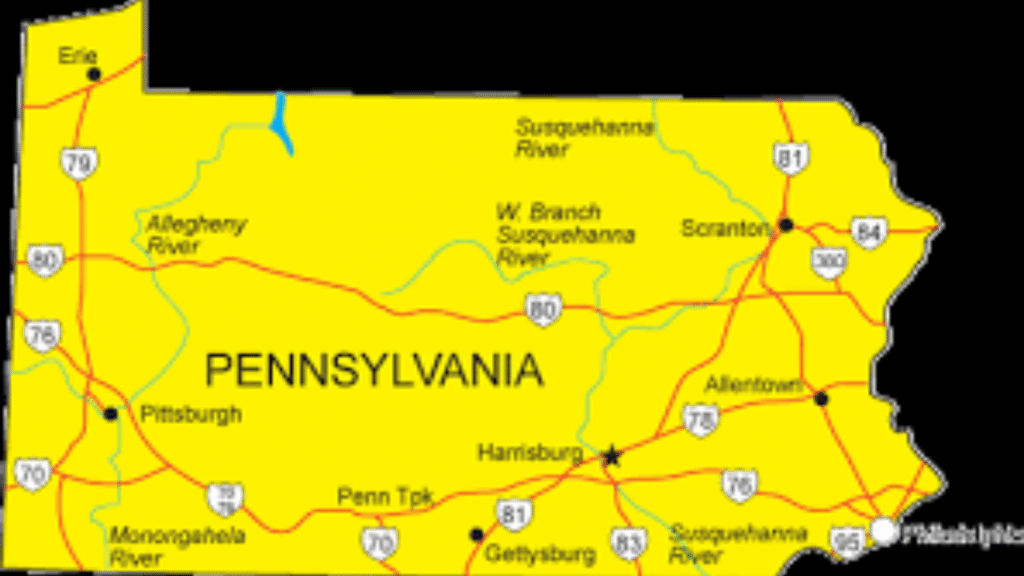 Key Geographical Features on a Map of Pennsylvania